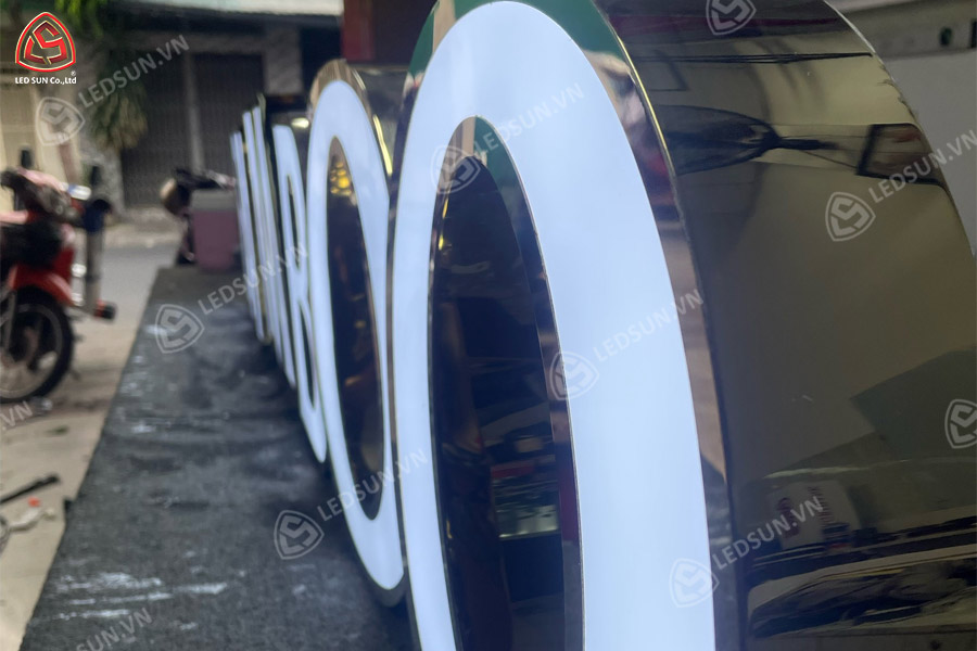 Chữ nổi inox mặt mica sáng đèn là một loại sản phẩm quảng cáo phổ biến, thường được sử dụng để làm bảng hiệu, logo hoặc chữ trang trí cho các doanh nghiệp, cửa hàng, nhà hàng và showroom. Đây là sự kết hợp giữa chất liệu inox và mica, mang lại tính thẩm mỹ cao cùng hiệu ứng ánh sáng nổi bật.