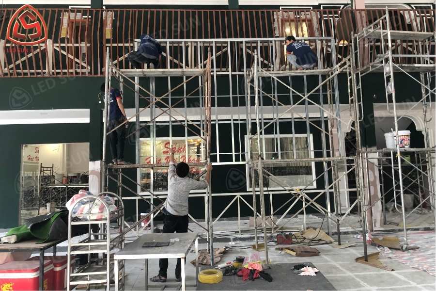 | Khung sắt + Thi công lắp đặt | Báo giá riêng | Tùy mặt bằng, độ cao, kết cấu treo/cố định |